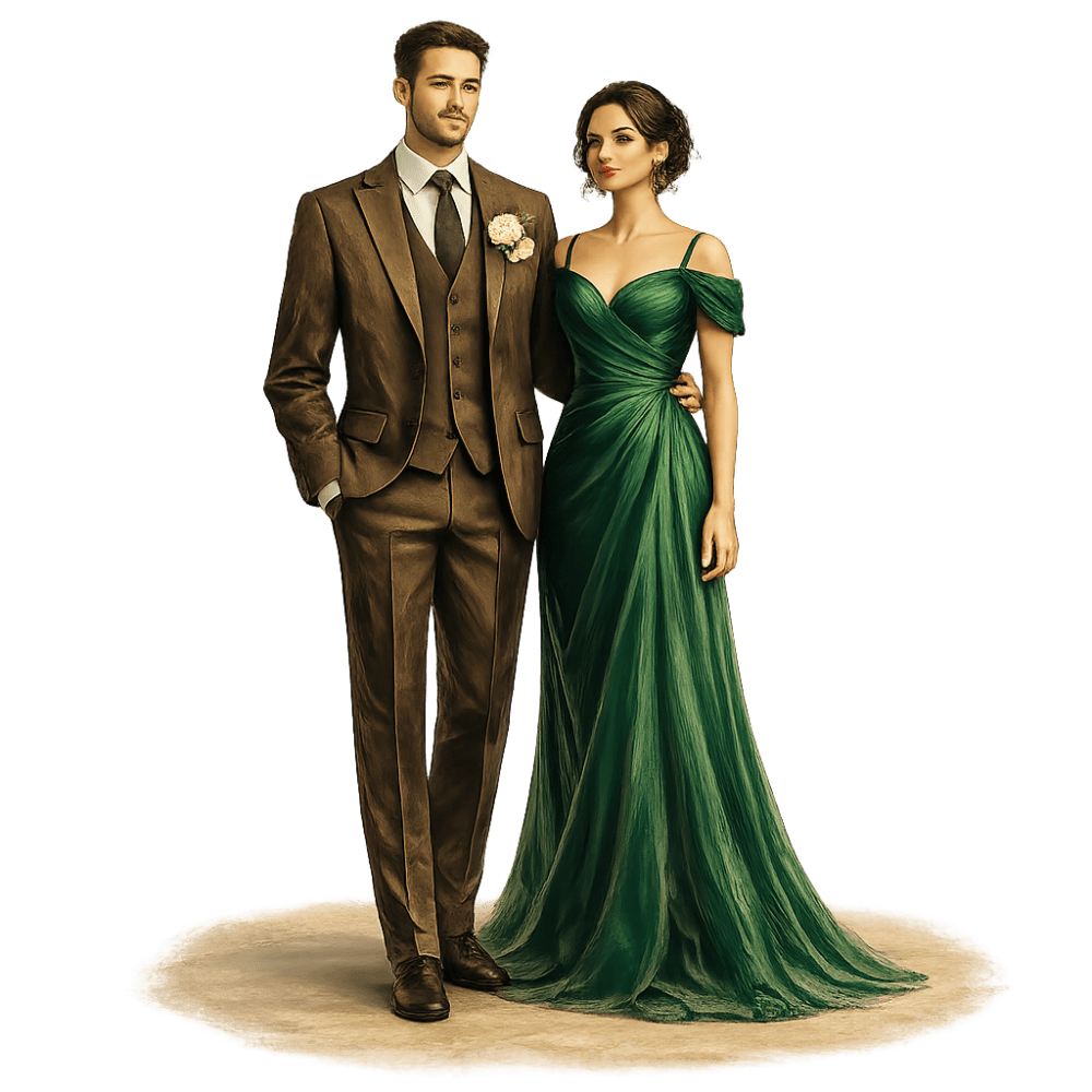 O traje recomendado para o nosso grande dia é o passeio completo. Para os homens, terno, gravata e sapato social. Para as mulheres, vestidos longos são ideais. Se for usar salto, lembre-se de escolher calçados confortáveis e adequados para o gramado.